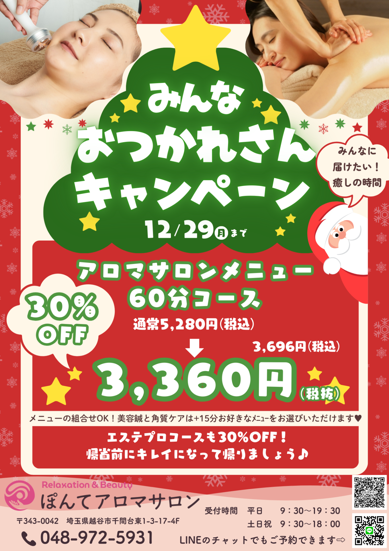 ぽんてアロマサロンから、1年の感謝をぎゅっと込めたキャンペーン ご用意しました🎄