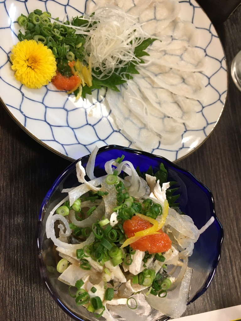 ふぐ刺し、とらふぐ焼き、