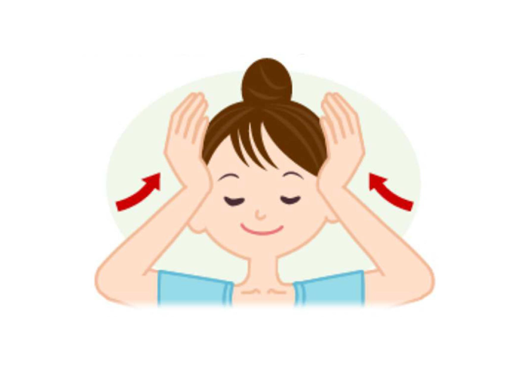 こめかみや額を外側に円を描くようにマッサージしても効果的ですよ!