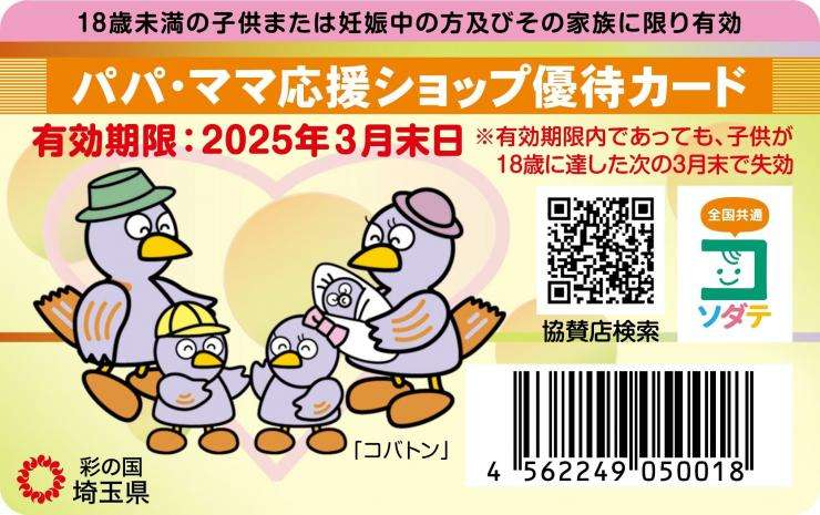埼玉県パパ・ママ応援ショップ優待カードご利用で以下のサービスをお受けいただけます。